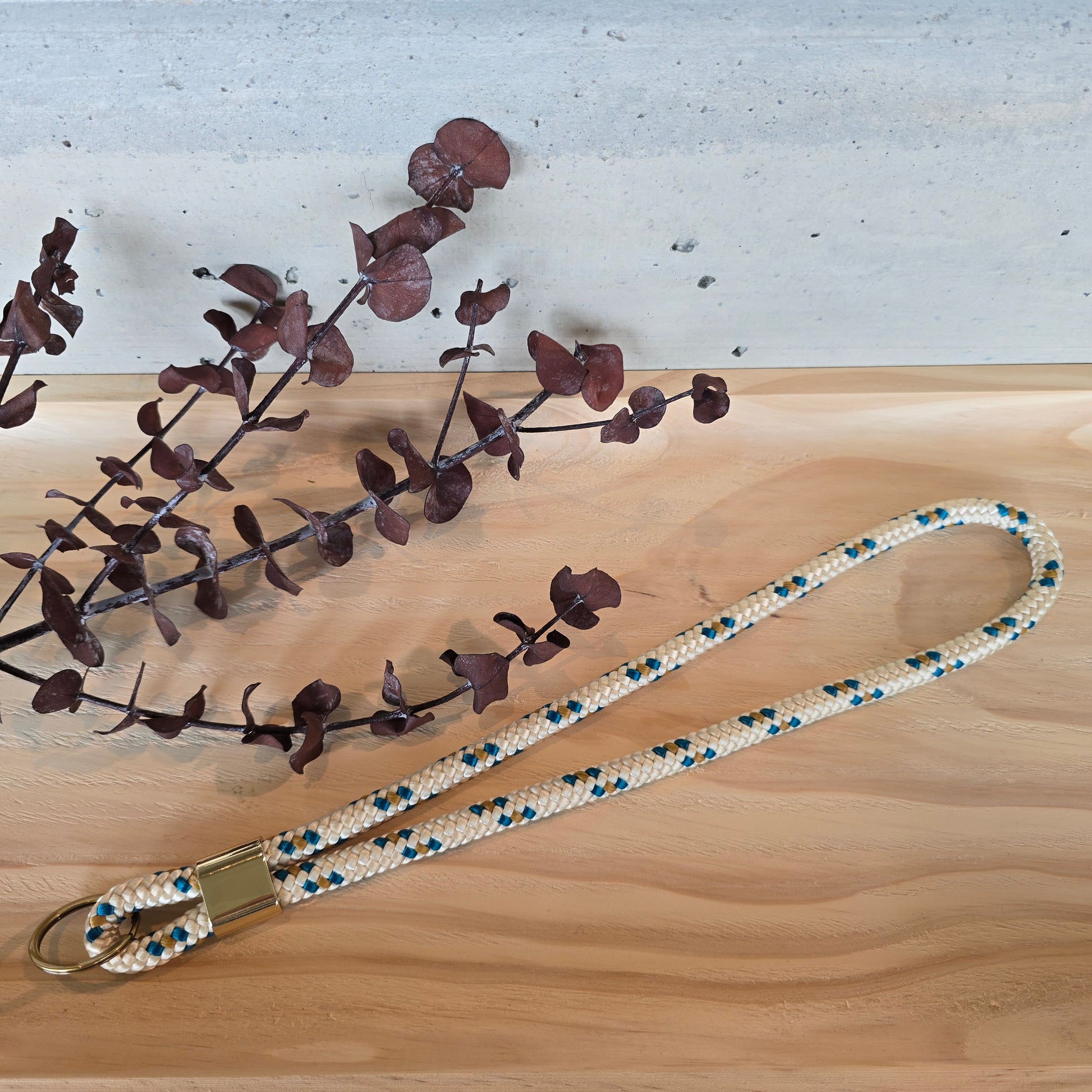 Schlüsselband lang creme/türkis
